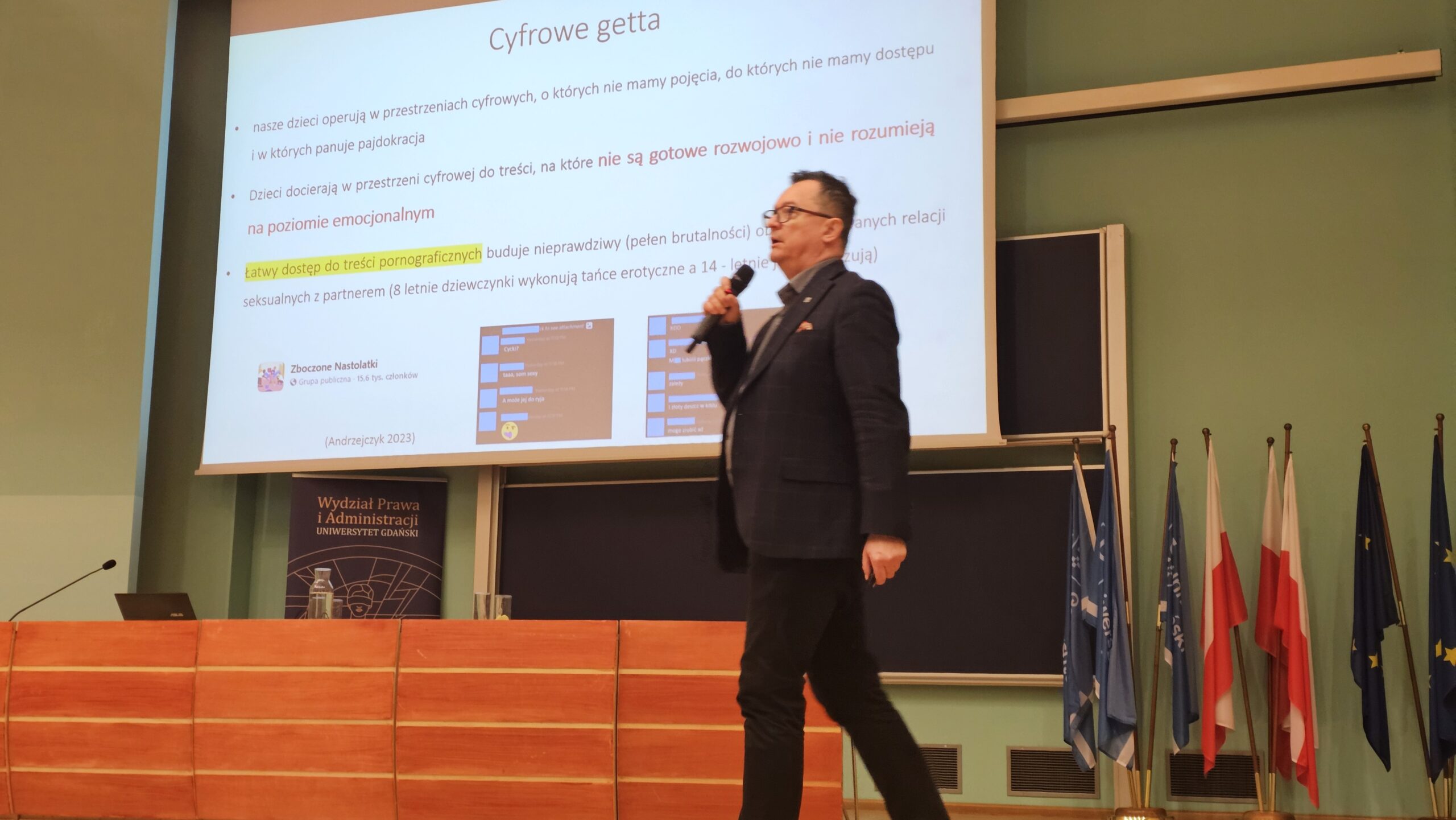 Część dedykowaną młodzieży otworzyli m.in. prof. A. Jurkowska-Zeidler oraz wiceprezydent Gdańska M. Chabior. W programie znalazły się wystąpienia dotyczące akademickiego modelu nauczania o mediacji, ale także – co szczególnie ważne – prelekcje łączące prawo, psychologię i profilaktykę: o hejcie, cyberprzemocy i ich konsekwencjach oraz o tym, jak szkoła może reagować i jak budować bezpieczne środowisko.